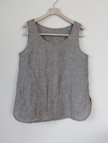 前後身頃の肩線を中表に合わせて縫い、ロックして後に倒します
