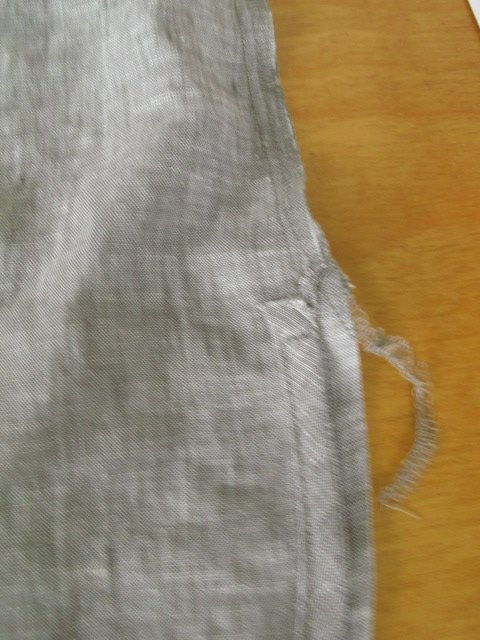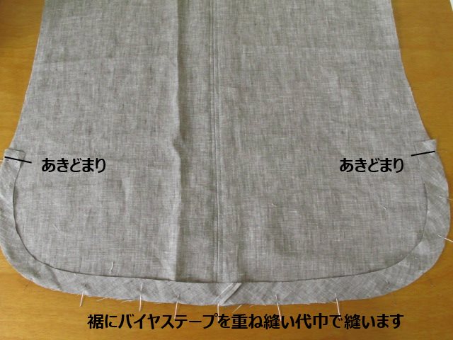 裾を裏バイヤス始末します。あきどまりちょうどを角に縫います。