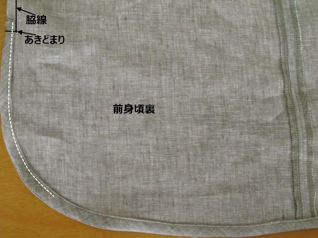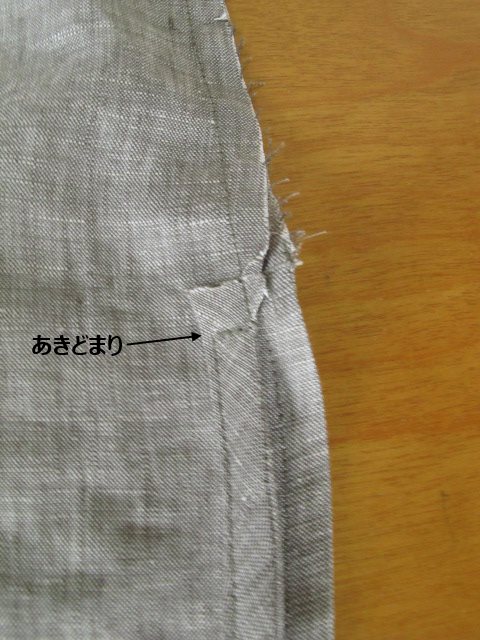 あきどまりの上1cmまで延長して縫います。(縫い目は脇線より外側です)