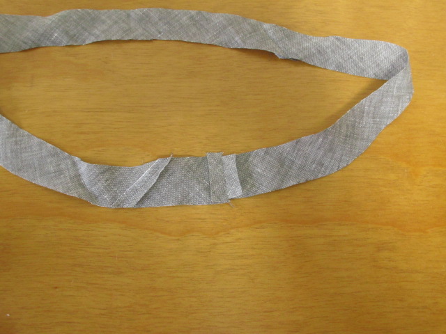 バイヤステープを指定寸法の輪にして、接ぎ目を後中心に合わせて、