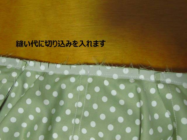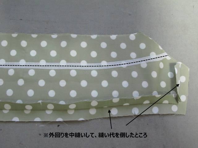 (※左側の縫い代の端をアイロンで折ってから縫います)