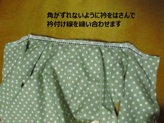 衿を表裏を間違えないように挟み込み、切り込んだ角がずれないように縫います