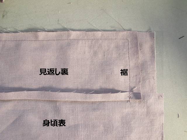 見返しの端の縫い代分折りこみアイロンで押さえておきます