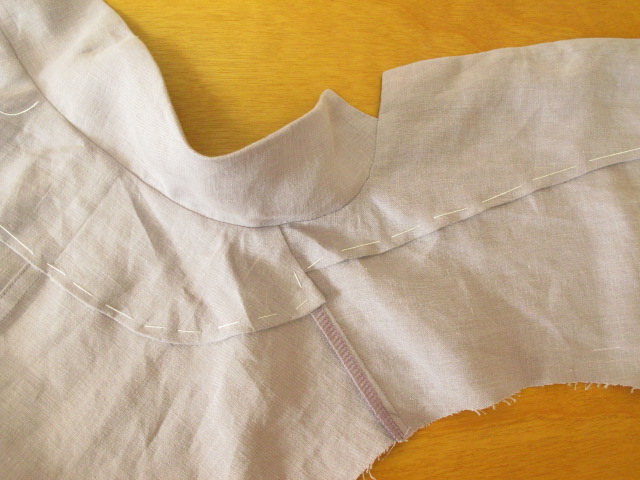 (※見返しの肩線は前後で長さが違います。衿ぐり側で合わせて縫います)